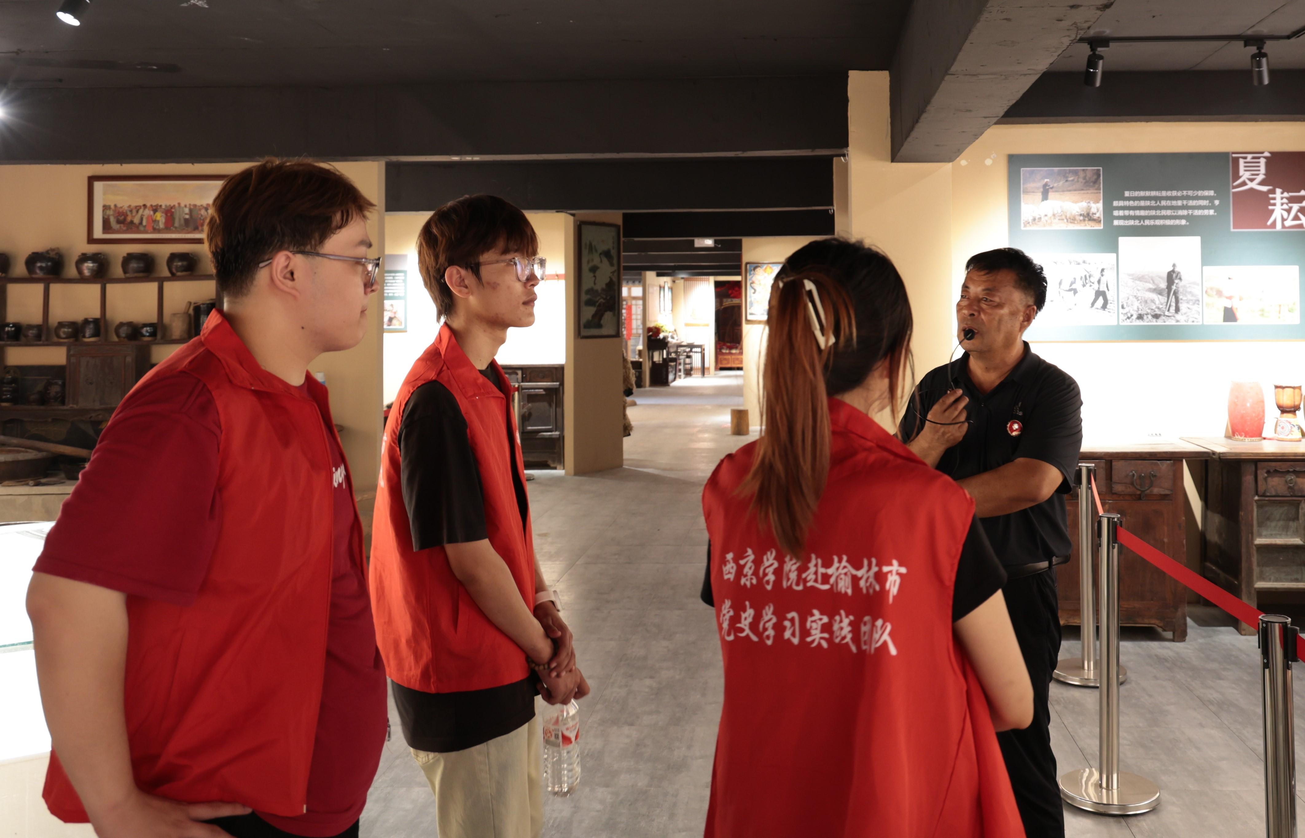 打卡榆阳红色场馆,点燃爱国情怀。太阳成tyc33455ccwww马克思主义学院党史学习实践团队在陕北民俗博物馆领略了陕北各地民俗,唤醒了实践团队队员埋藏心底的乡情热爱;在陕北民间红色革命历史纪念馆,实践团队队员参观了展室上中下分层陈列的陕北革命根据地的创立、西北革命根据地的创立、伟大的抗日战争、伟大的人民解放战争、伟大的抗美援朝运动、开国元勋高岗、爱国将领杨虎城、向雷锋同志学习、民俗展品等红色展品,追忆了中国革命建设的艰辛历程;在黄土地民俗博物馆(红色文化交流中心),实践团队队员学习了各项藏品背后的历史故事,对民俗文化有了更深层次的了解,领略了门箱竖柜、插镜、剪纸、刺绣、木雕等背后的故事,展示了榆林人质朴的生活风貌和悠久的历史情怀;在陕西观止文化艺术博物馆,实践团队队员先后对中共中央转战陕北历史陈列馆、陕北民俗展馆进行了参观,了解了解放战争时期保存下来的珍贵藏品,重温那段难忘的峥嵘岁月,感受先烈们无私奉献、奋勇拼搏的革命情怀,见证了革命先辈们那段艰苦奋斗的岁月,让实践团队成员身临其境,感悟革命精神。